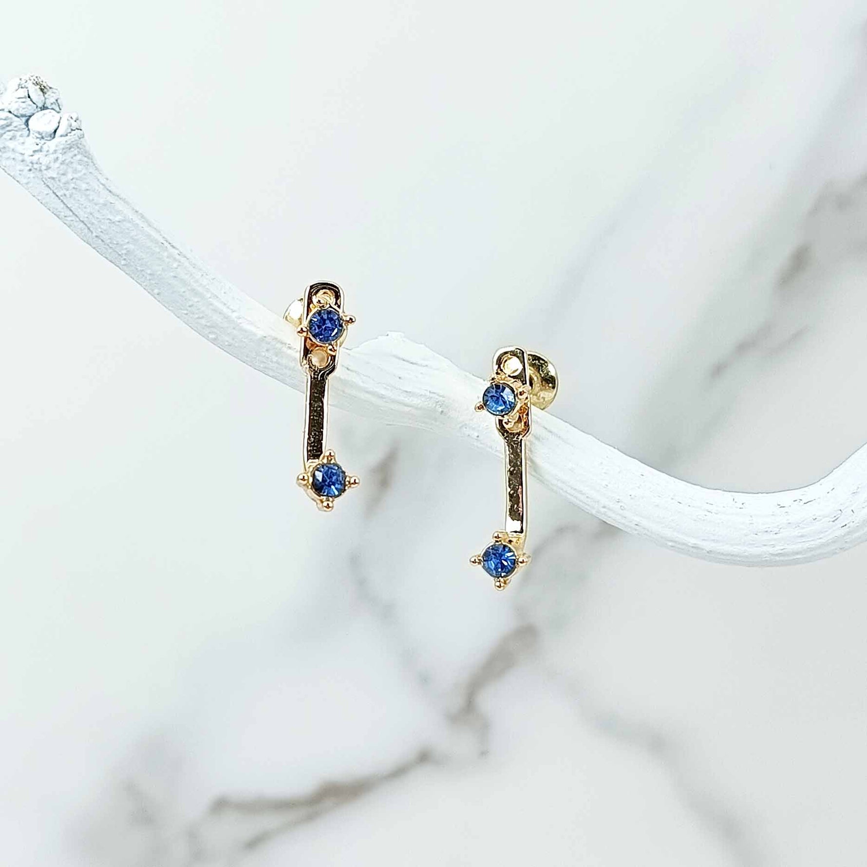 Celestial Drop Birthstone Stud Earrings – 12 Month Gold Bar Design