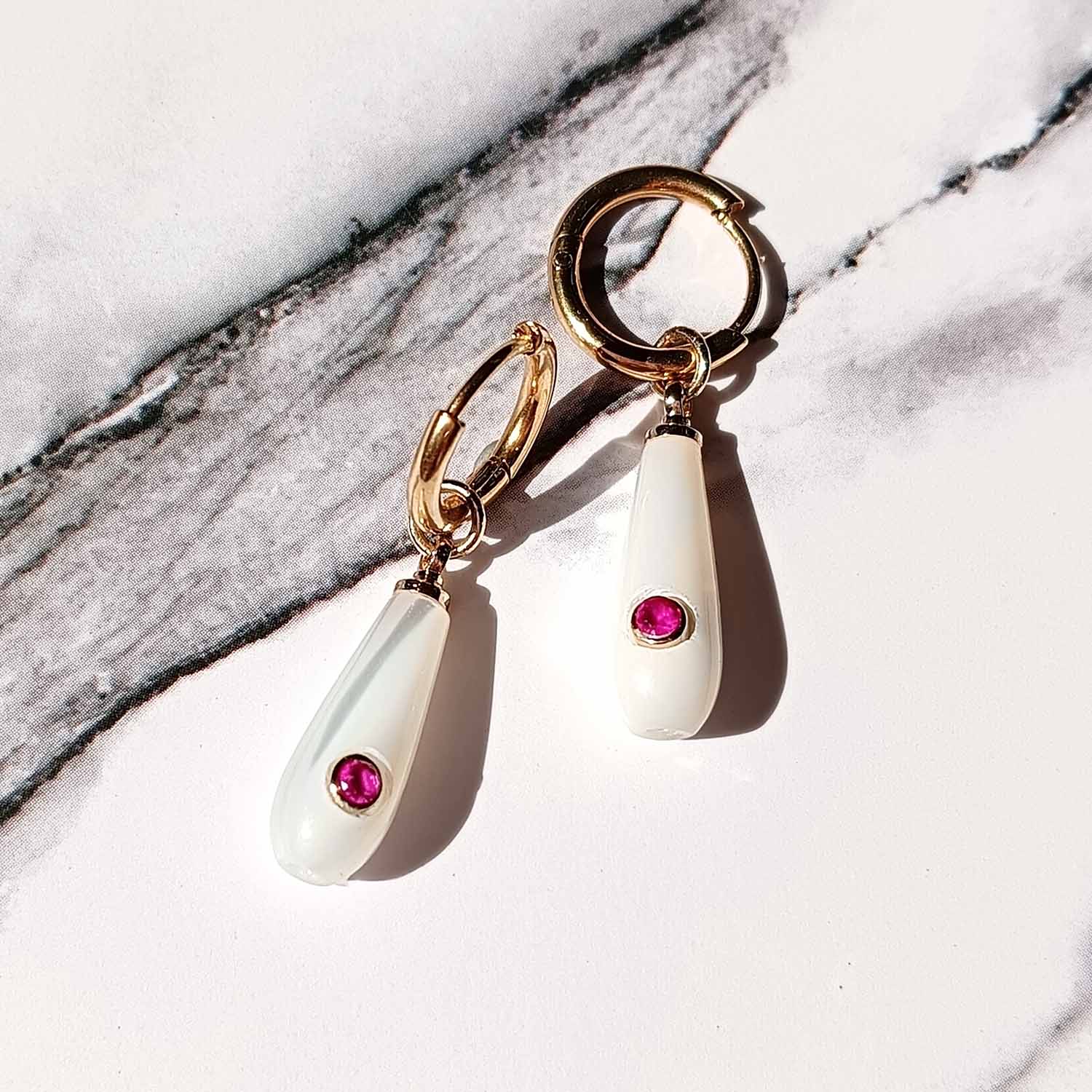 These handcrafted teardrop earrings combine the soft luster of mother of pearl with your choice of 12 birthstone-inspired CZ crystals, each representing a special month, memory, or milestone.