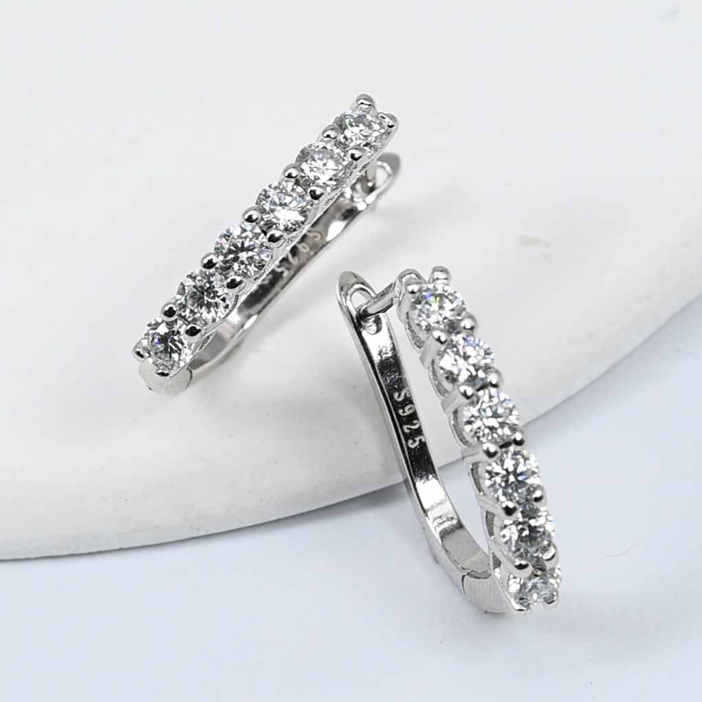 Unit price perThese beautiful ladies sterling silver hoop earrings are perfect for everyday wear. The earrings have 6 brilliant cut lab grown diamonds each that total 1.2ct and are claw set.