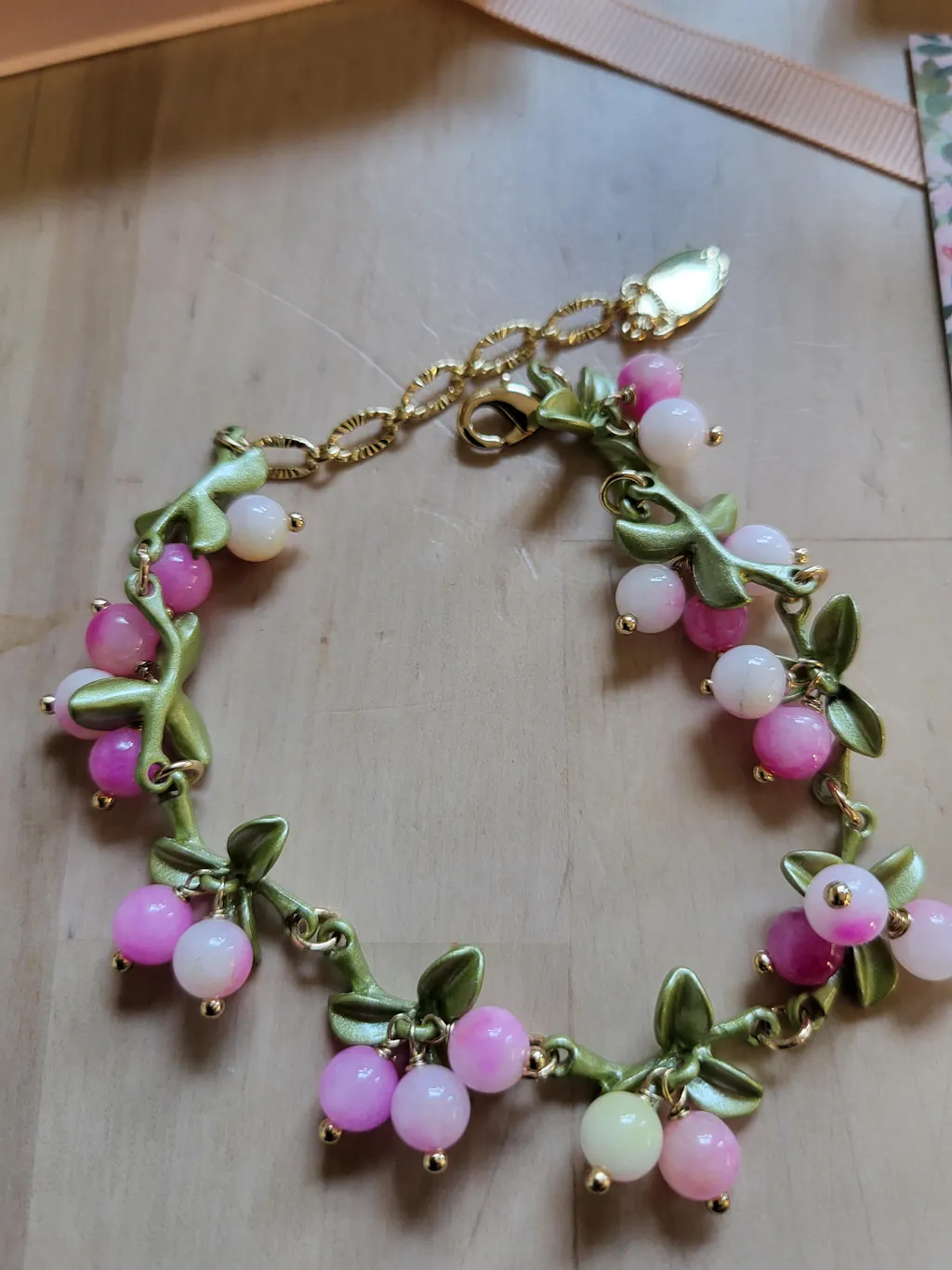 Berry Garden Bracelet – Semi-Precious Stone & Enamel Leaves