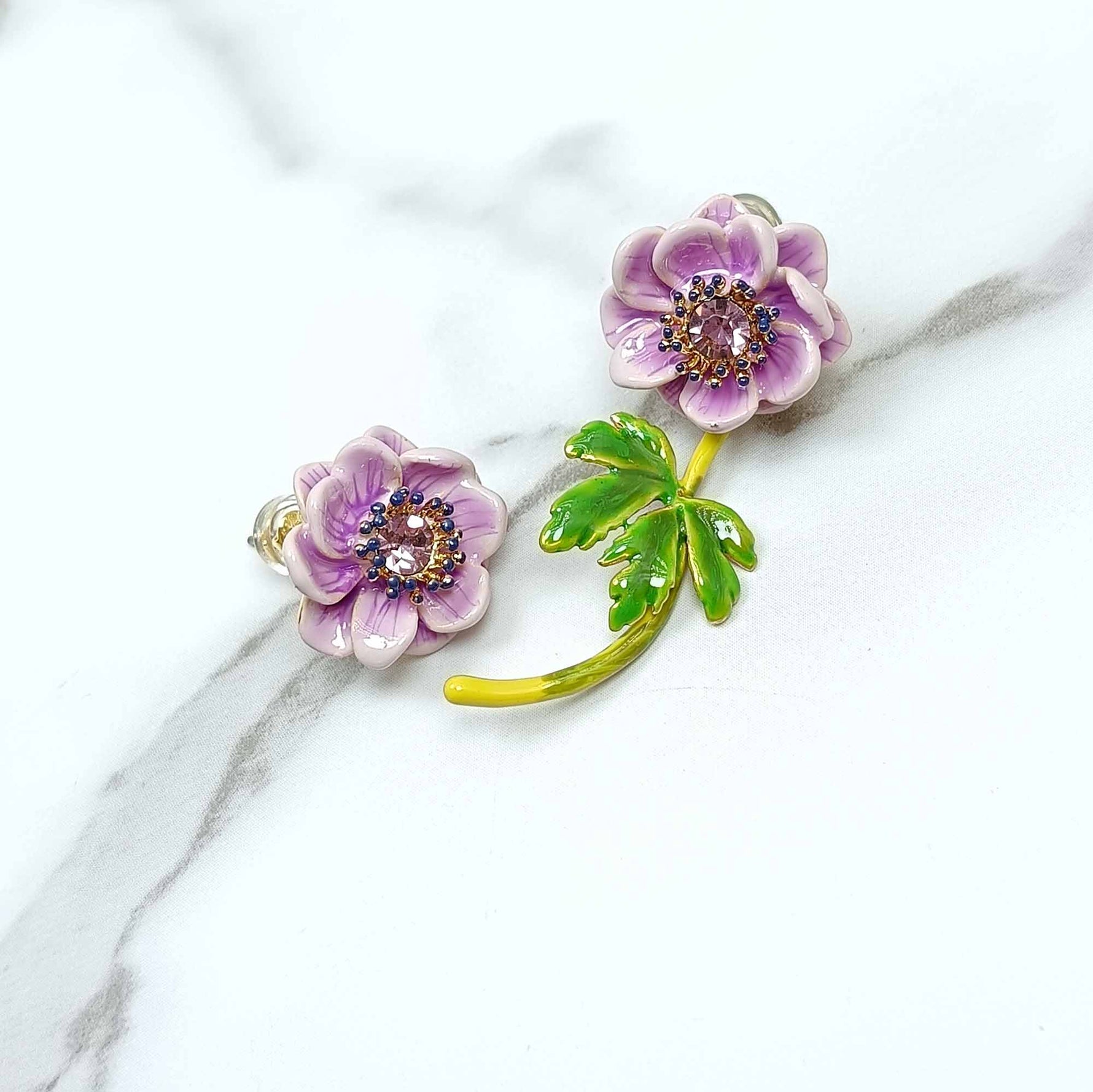 Add a pop of whimsy to your outfit with our Purple Anemone Asymmetrical Earrings. Featuring a charming purple anemone design, these earrings are sure to turn heads and bring a smile to your face. Perfect for anyone who loves to add a little fun to their style.